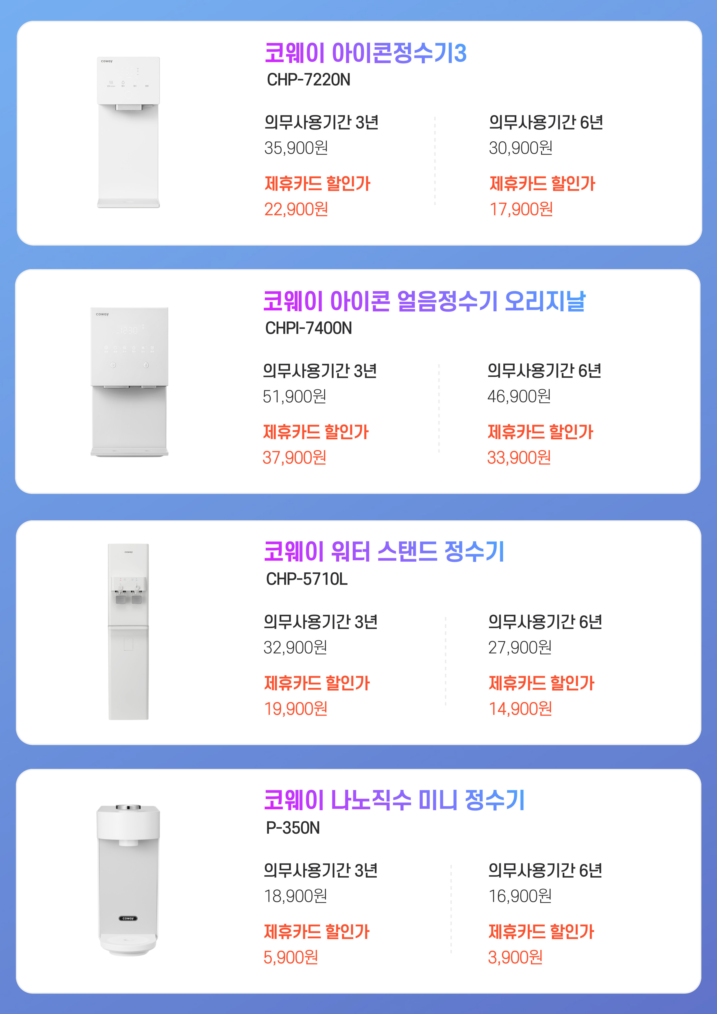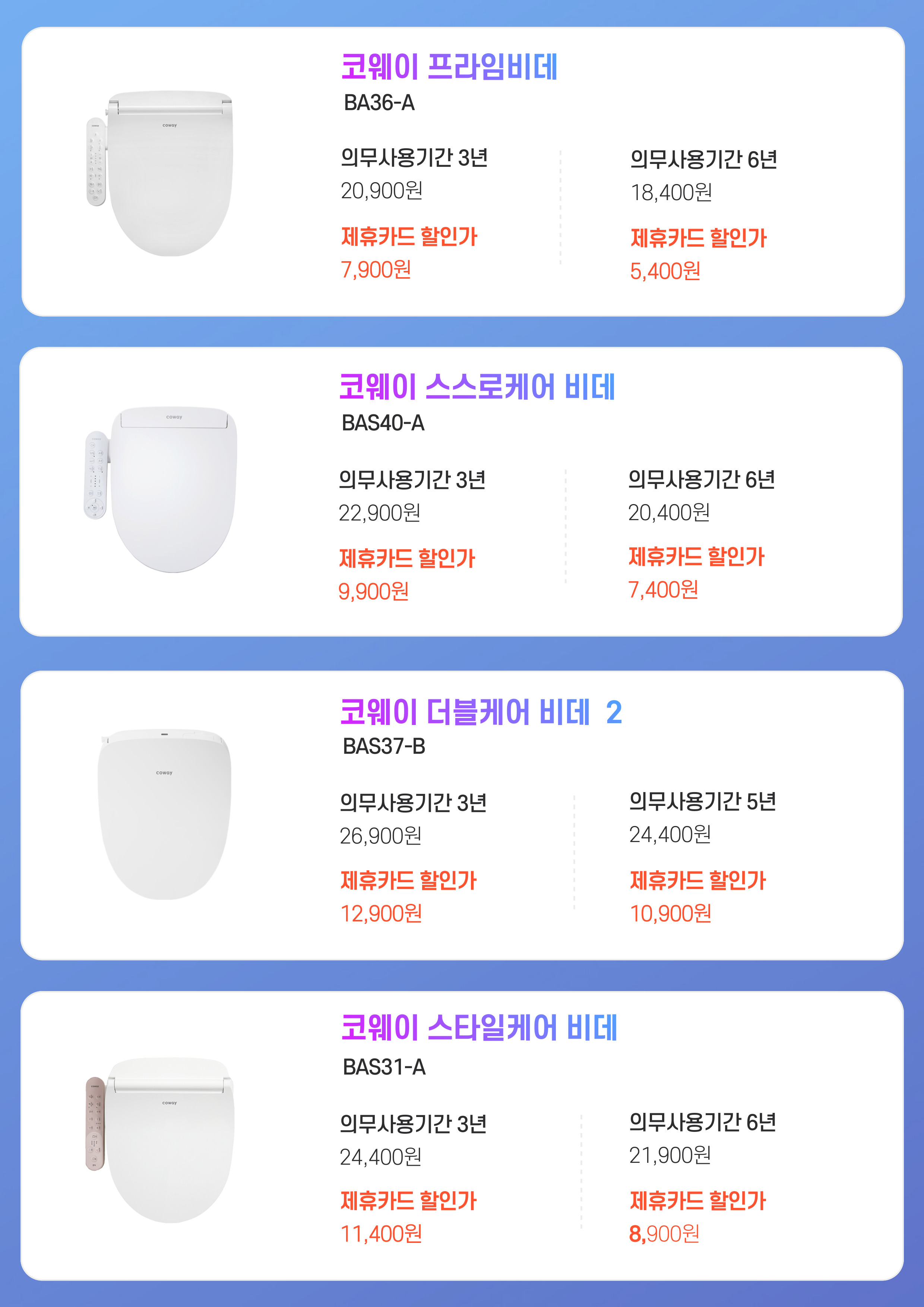 - 정수기, 비데, 공기청정기처럼 관리가 중요한 제품을 찾는 분